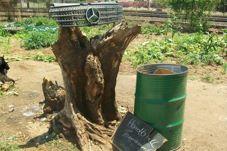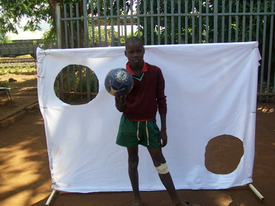 Twanano gewann die Kette bei einen Sport Parkour den wir aus alten Dosen und Flaschen gebaut haben.