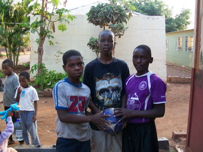 Das ist Katjas Team, mit Themba, Twanano, Issah, Eugen, Nelson und Iris. Wir gaben nicht alles, sonst hätten sie keine Lust mehr gehabt mit uns zu spielen!