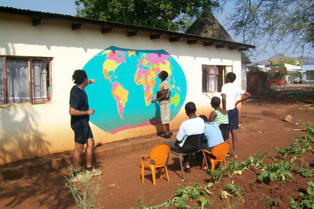 Beim Erdkundeunterricht erkläre ich gerade Twanano wie groß die Welt ist, er kann es kaum glauben!